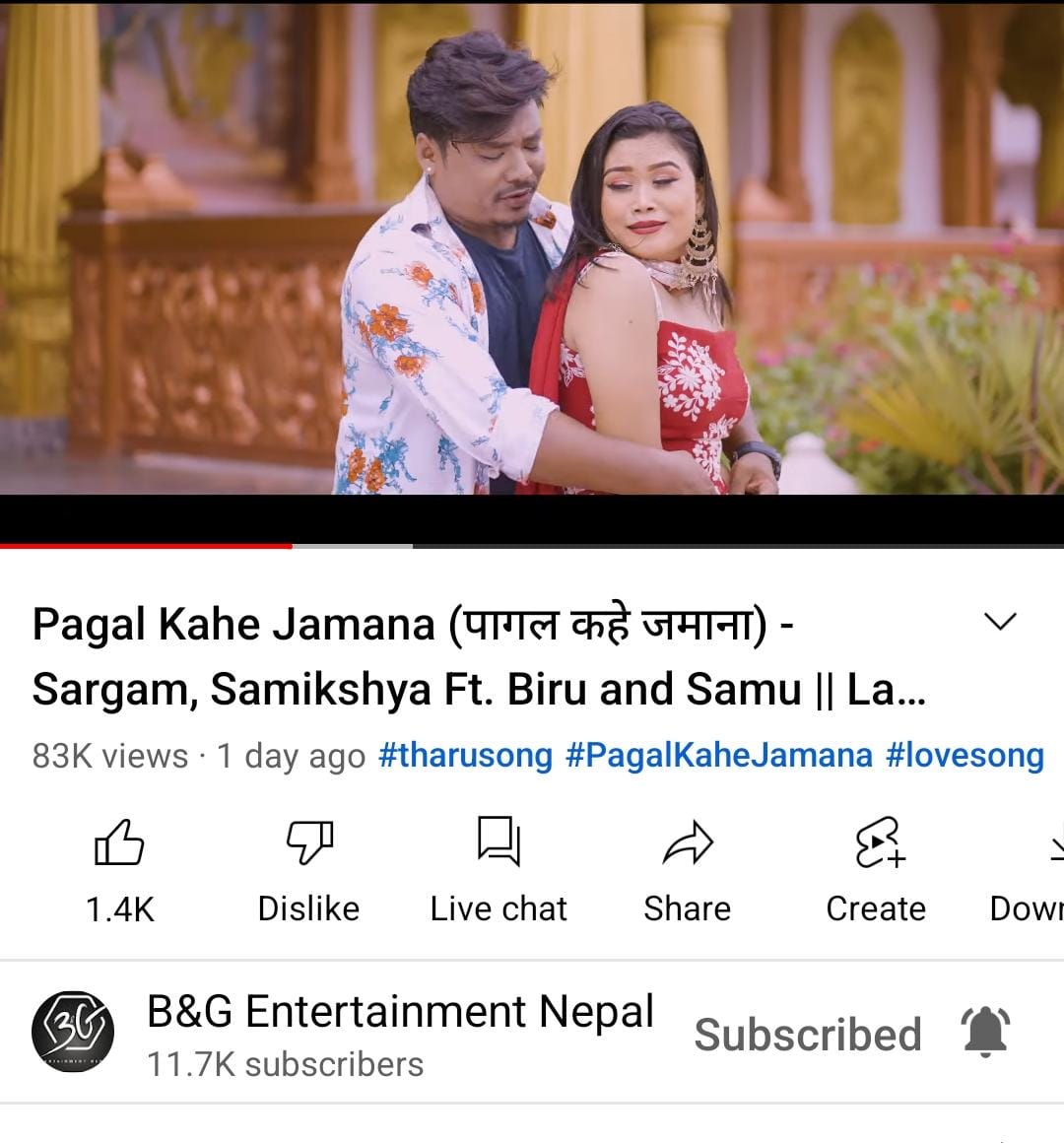बि.एन्ड जि.तथा गणेश चौधरी द्वारा धमाकेदार प्रस्तुति थारु गीतमा प्रमुख भुमिकामा बिरु चौधरी र समु चौधरी गरेका हुन भने सरगम चौधरी र समिक्षा चौधरीको स्वरमा सजिएको, शब्द सगीत सरगम चौधरीको रहेको “पागल कहेला जमाना” सर्बत बजार मा चर्चाको बाटो तिर लम्किदै रहेको कलाकार बिरु चौधरीले जानकारी गराउनु भएको छ।