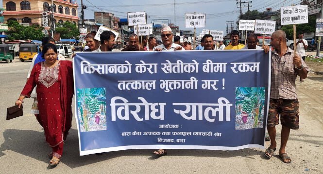 यथाशीघ्र बीमा रकम उपलब्ध गराइदिन आग्रह गर्दै पीडित किसानहरूले बाराका प्रमुख जिल्ला अधिकारी कृष्णबहादुर कटुवाललाई ज्ञापनपत्र पनि बुझाइसकेका छन् ।